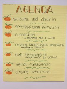 I never cease to be amazed at the level of energy and depth of discourse this passionate group of educators bring to these meetings. As we dived into our study by connecting to past experiences, discussing readings, and analyzing videos, what became clear is that we all share the underlying beliefs that children want to – and can – make good choices, and that it is our responsibility to support them as they learn to do so.