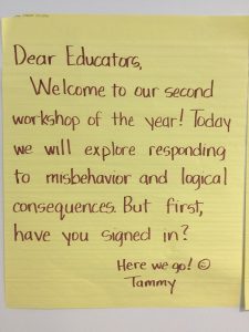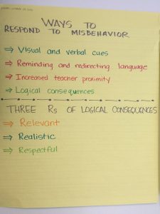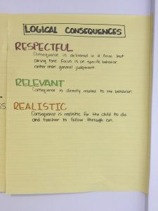 One of my favorite activities during the school year is the monthly workshop I facilitate with a group of our instructional assistants from upper elementary, the specials (art, music and PE), and Arabic classes. This year I’m using Responsive Classroom professional development kits as a resource for these workshops. At our most recent meeting, we focused on the topic of responding to misbehaviors with an emphasis on developing a better understanding of logical consequences.