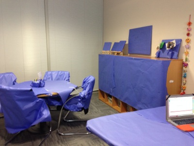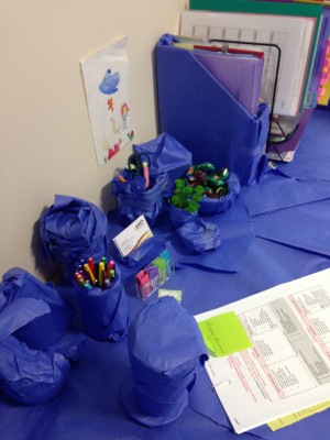 My office had been wrapped. The fifth grade team had wrapped my office in blue paper in celebration of April Fool’s Day. And everything was individually wrapped. My desk. Chairs. Pictures. Books. Pen holders and coffee cups. Desktop knick knacks and a camel-shaped stool. Everything. Our principal had been in on it and made sure that the fifth grade team knew when I would be out of the office. Now I knew why he had locked his door when we left for our meeting!