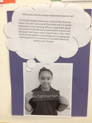 To me, the mission statement is kind of like the core values. You see it all around the school and it is pretty important to your learning. When I really think about the words, it reminds me to work hard in school now because it will have a major impact later in life.